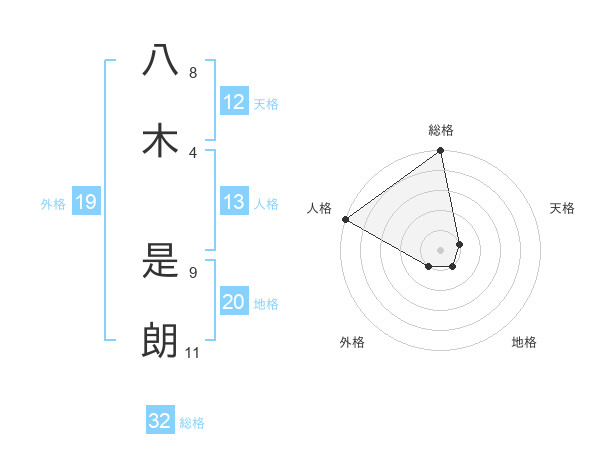 八木 是朗さんの総格は32画の5点!