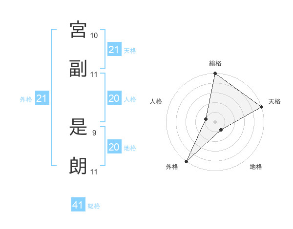 宮副 是朗さんの外格は21画の5点!