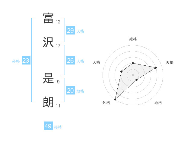 富沢 是朗さんの総格は49画の2点!