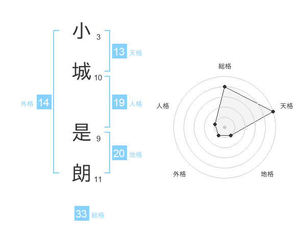 小城 是朗さんの天格は13画の5点!