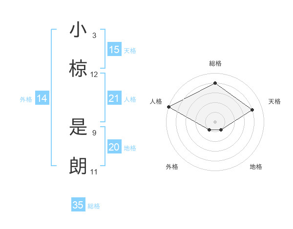 小椋 是朗さんを姓名の画数から五運を鑑定