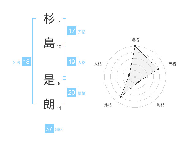 杉島 是朗さんの総格は37画の5点!