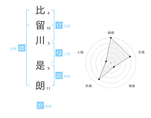 比留川 是朗さんの総格は37画の5点!