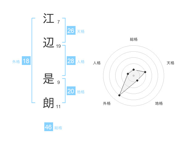 江辺 是朗さんの総格は46画の1点!