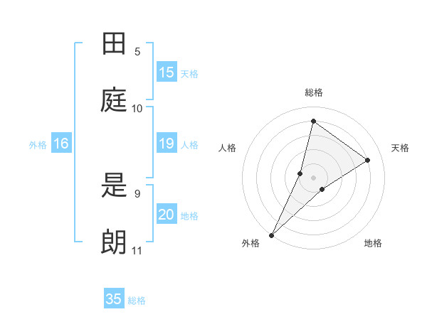 田庭 是朗さんの総格は35画の4点!