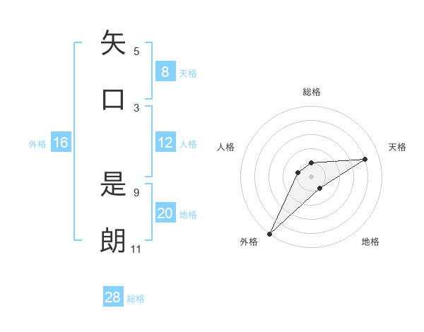矢口 是朗さんの天格は8画の4点!