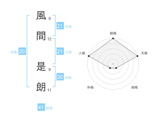 風間 是朗さんの天格は21画の5点!