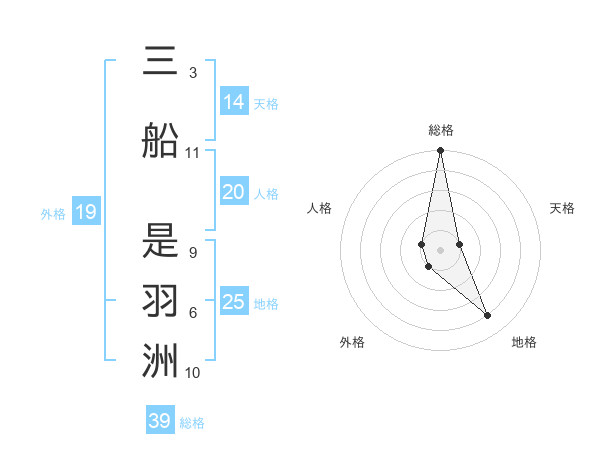 三船 是羽洲さんを姓名の画数から五運を鑑定