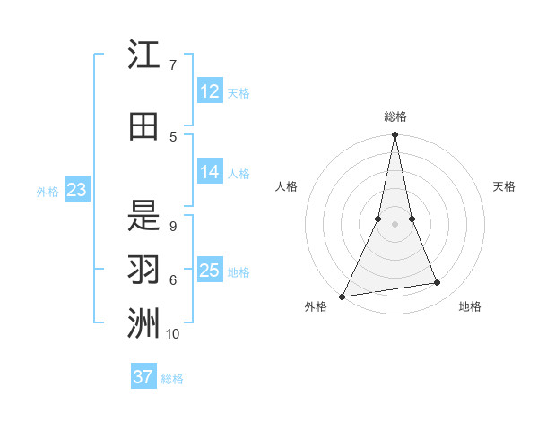江田 是羽洲さんの総格は37画の5点!