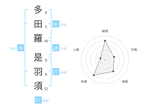 多田羅 是羽須さんを姓名の画数から五運を鑑定
