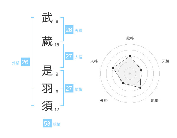 武蔵 是羽須さんの総格は53画の3点!