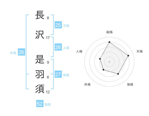 長沢 是羽須さんの総格は52画の4点!