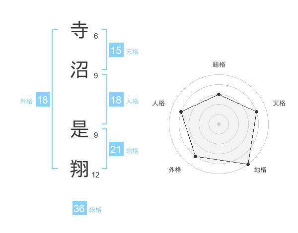 寺沼 是翔さんの外格は18画の4点!