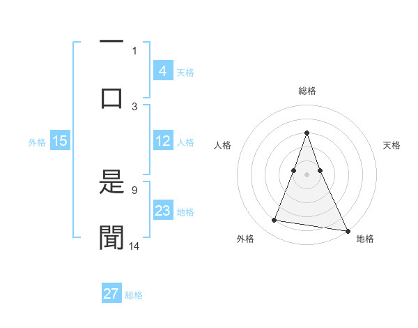 一口 是聞さんの総格は27画の3点!