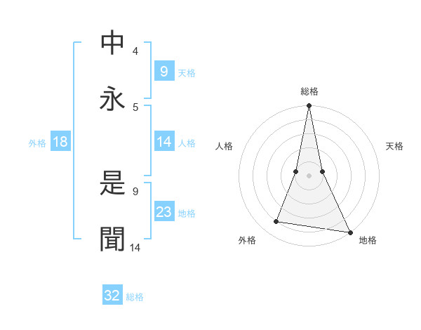 中永 是聞さんの総格は32画の5点!