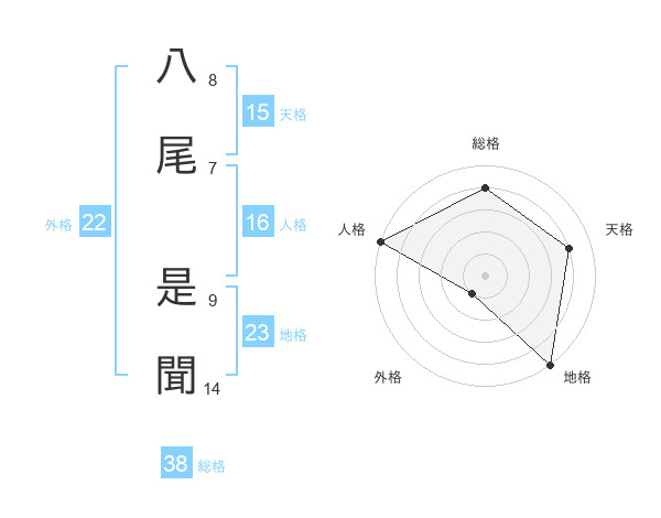 八尾 是聞さんを姓名の画数から五運を鑑定