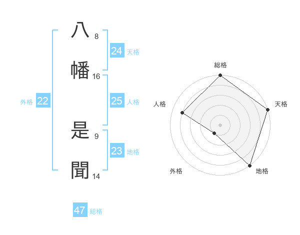 八幡 是聞さんの総格は47画の5点!