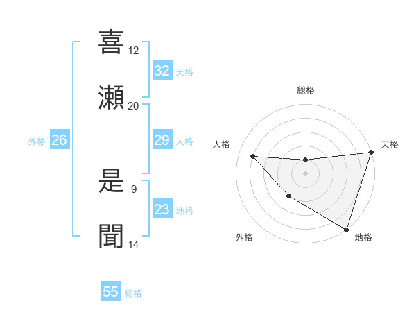喜瀬 是聞さんの天格は32画の5点!