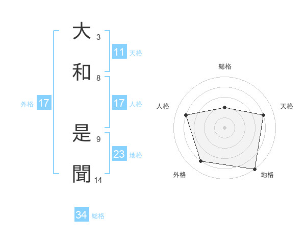 大和 是聞さんの総格は34画の2点!