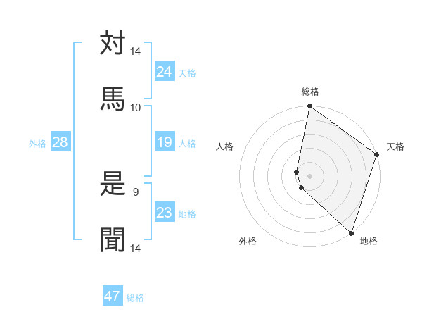 対馬 是聞さんを姓名の画数から五運を鑑定