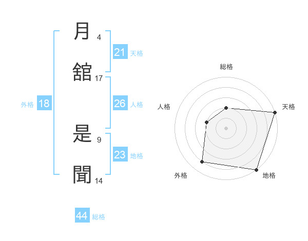月舘 是聞さんを姓名の画数から五運を鑑定