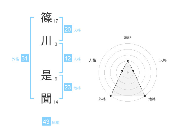 篠川 是聞さんを姓名の画数から五運を鑑定