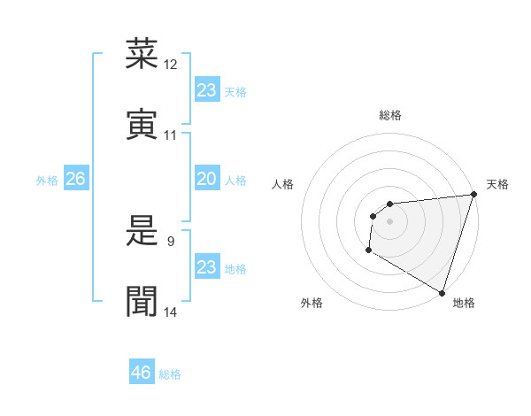 菜寅 是聞さんの地格は23画の5点!