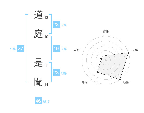 道庭 是聞さんの天格は23画の5点!