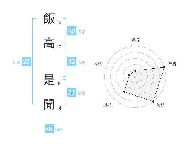 飯高 是聞さんの天格は23画の5点!