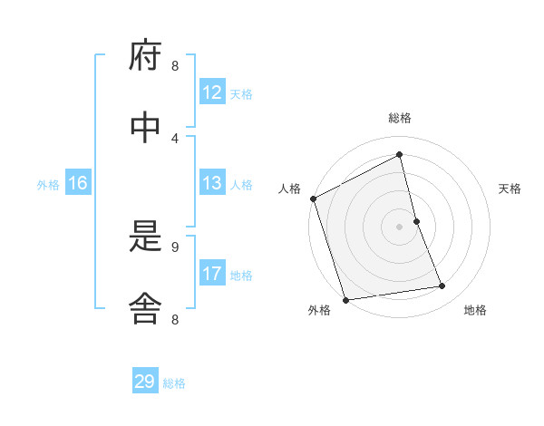 府中 是舎さんの地格は17画の4点!