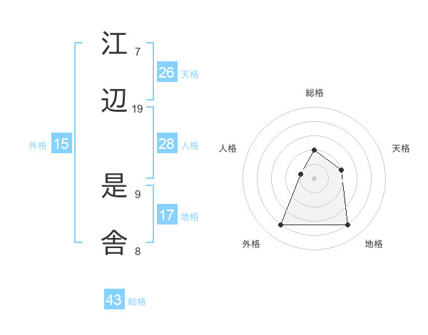 江辺 是舎さんを姓名の画数から五運を鑑定