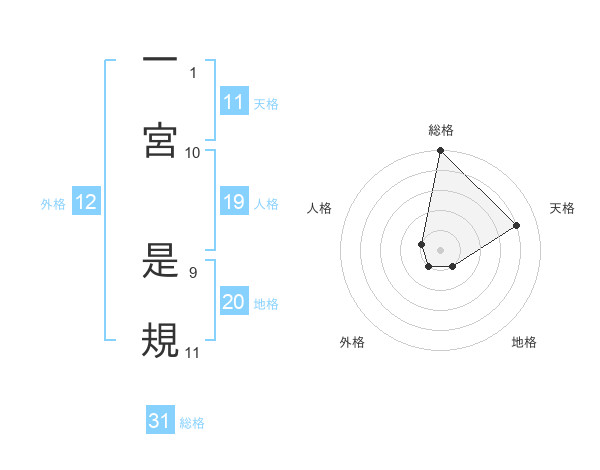 一宮 是規さんの地格は20画の1点!