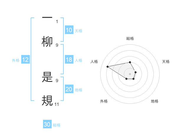 一柳 是規さんの地格は20画の1点!
