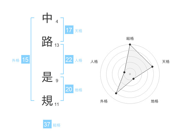 中路 是規さんの総格は37画の5点!