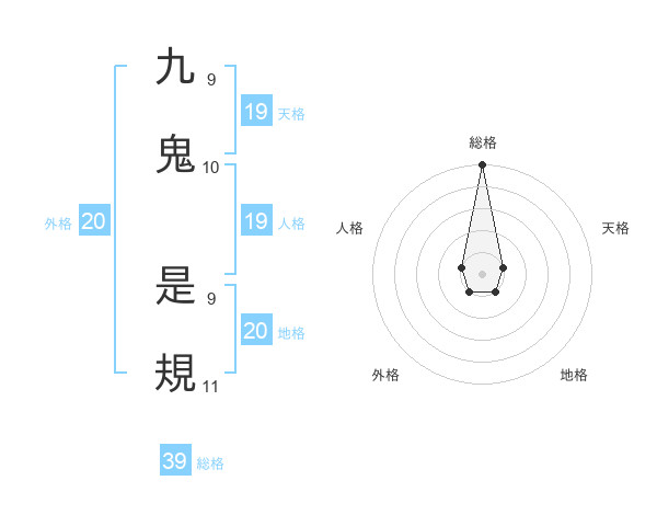 九鬼 是規さんの総格は39画の5点!
