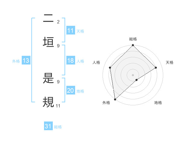 二垣 是規さんの外格は13画の5点!