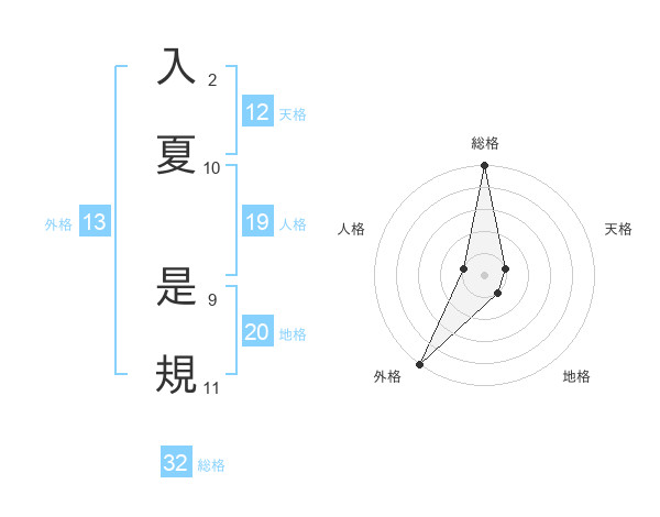 入夏 是規さんの外格は13画の5点!