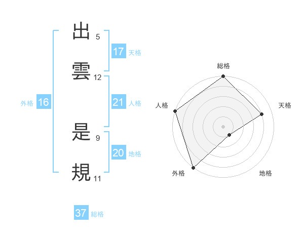 出雲 是規さんの外格は16画の5点!