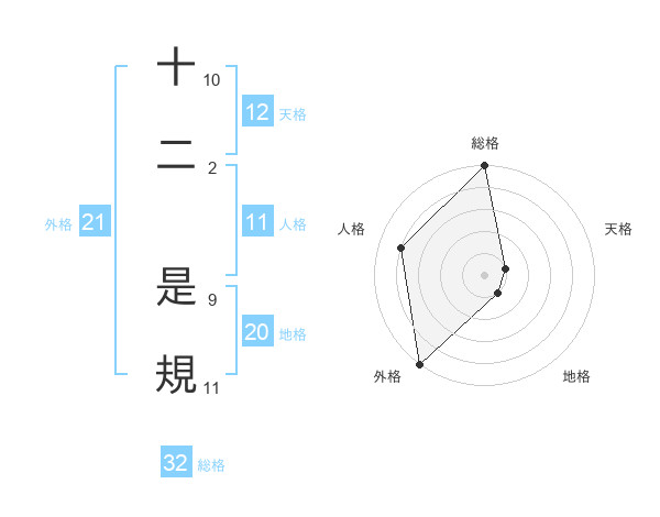 十二 是規さんの外格は21画の5点!