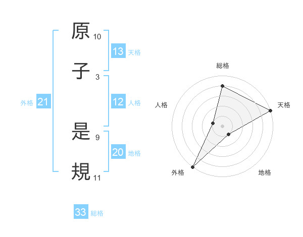 原子 是規さんの天格は13画の5点!