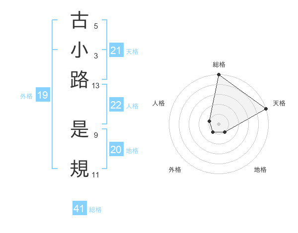 古小路 是規さんの天格は21画の5点!