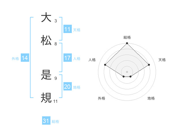 大松 是規さんの総格は31画の5点!
