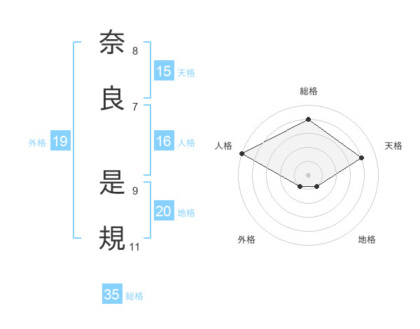 奈良 是規さんを姓名の画数から五運を鑑定