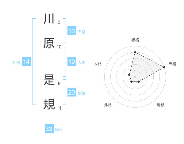 川原 是規さんの天格は13画の5点!