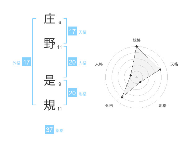 庄野 是規さんの外格は17画の4点!