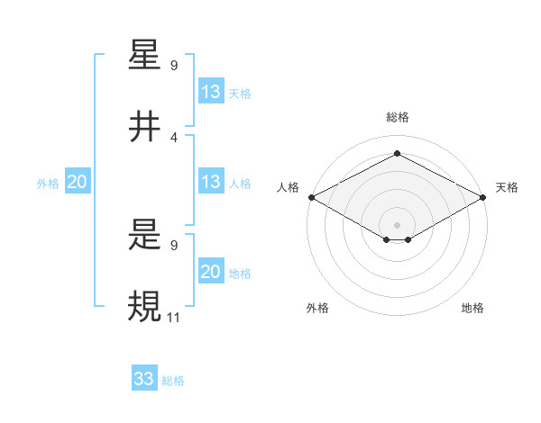 星井 是規さんの天格は13画の5点!