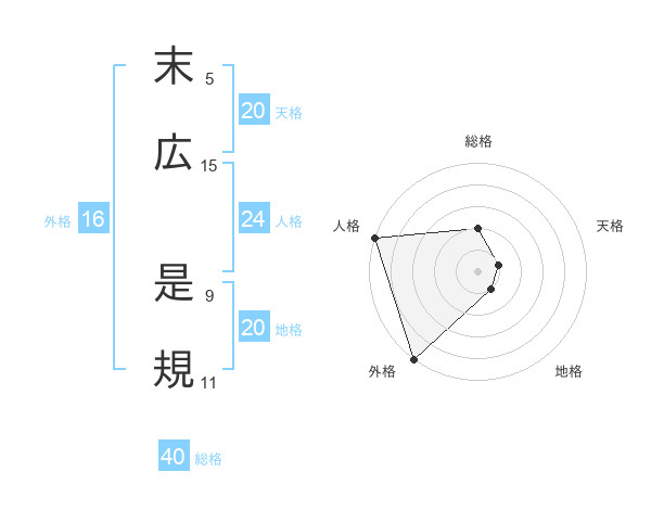 末広 是規さんの地格は20画の1点!