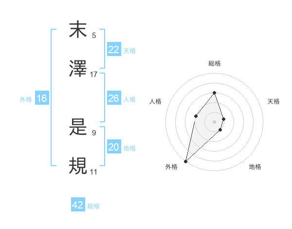 末澤 是規さんの地格は20画の1点!