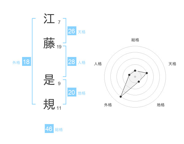 江藤 是規さんの総格は46画の1点!