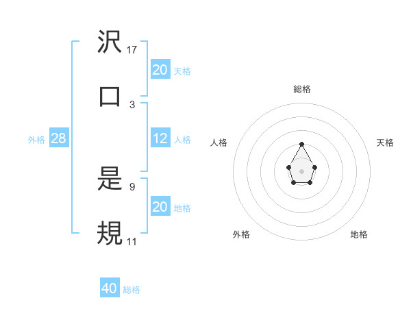 沢口 是規さんの地格は20画の1点!